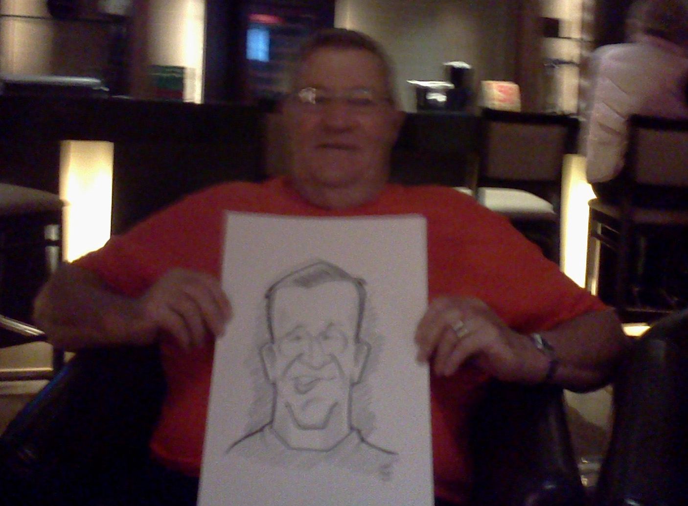 Recent pictures from a caricature event at the Waterloo Isle of Capri Casino Promotion, Sorry for the picture quality, I used my cell phone and it doesn't take the best pictures. Note the bottom last 3-4 pictures. They are all wearing t-shirts with the caricatures I created and shown in previous post.